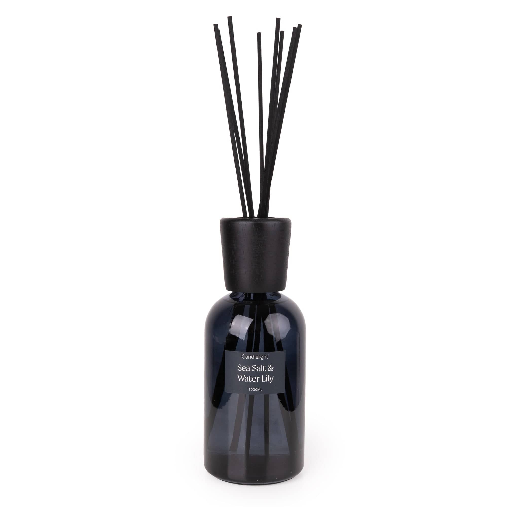 Bring a calm, coastal mood to any room with this 1000 ml Reed Diffuser in Sea Salt & Water Lily, presented in a sleek deep-blue glass bottle with a refined black stopper and a cluster of premium fibre reeds. The fragrance opens with crisp sea-salt freshness, drifts into a soft heart of dewy water lily, then settles on a warm, skin-hugging amber base for a balanced, uplifting scent. Its generous 1-litre size ensures long-lasting, even diffusion that’s perfect for larger spaces, hallways, or open-plan living, without the need for flames or plugs. Beautifully boxed and ready to gift, it’s an elegant way to keep your home subtly scented, day after day.